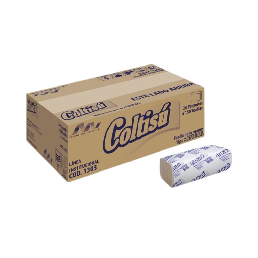 Toalla De Papel Tipo Z, doble hoja, ideal para el secado e higiene de manos. solución integral de eficiencia y rendimiento. Caja x 24 paquetes (cada paquete x 120 toallas). Color: Blanco y Natural.